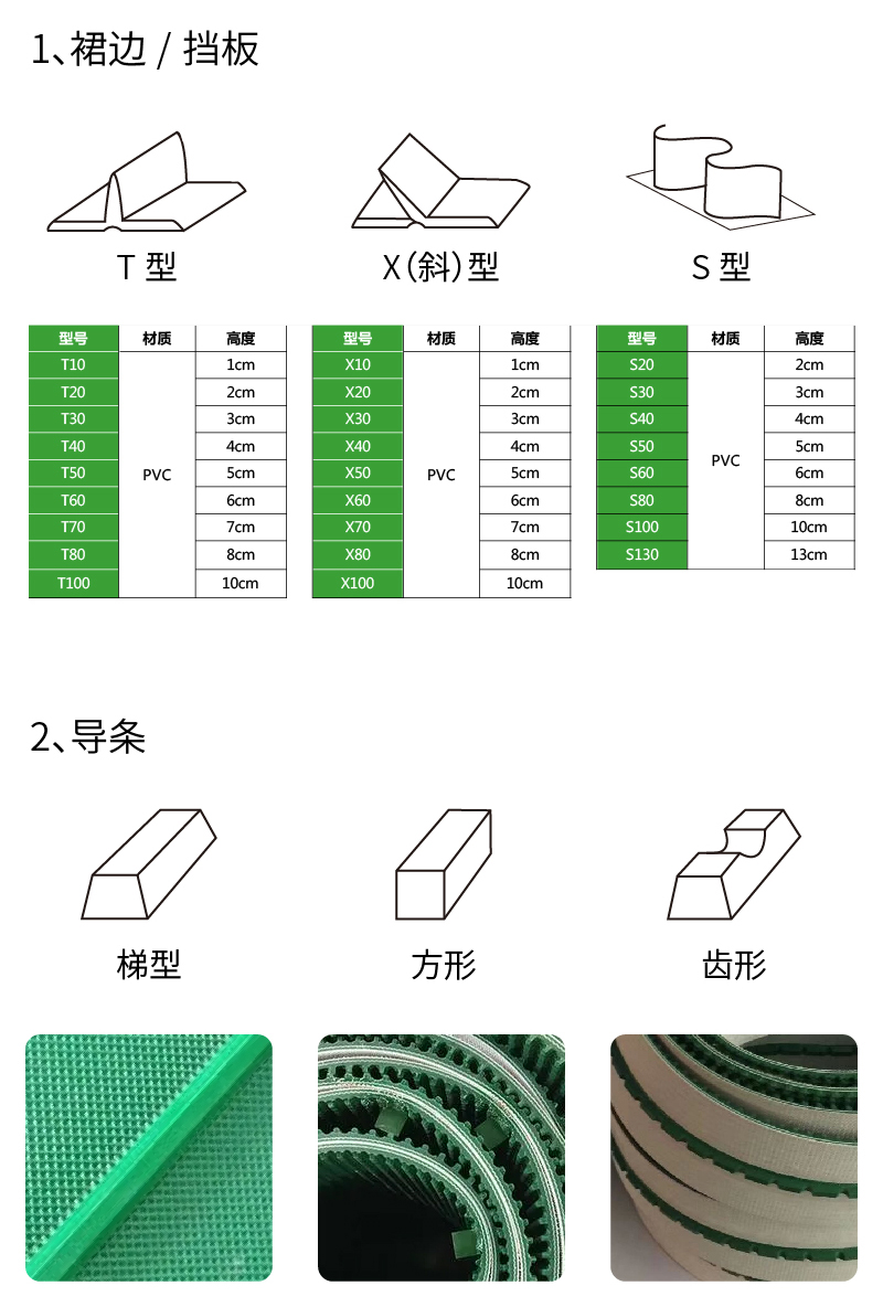 波浪纹输送带 材质为PVC,工作温度-10°到+80°
